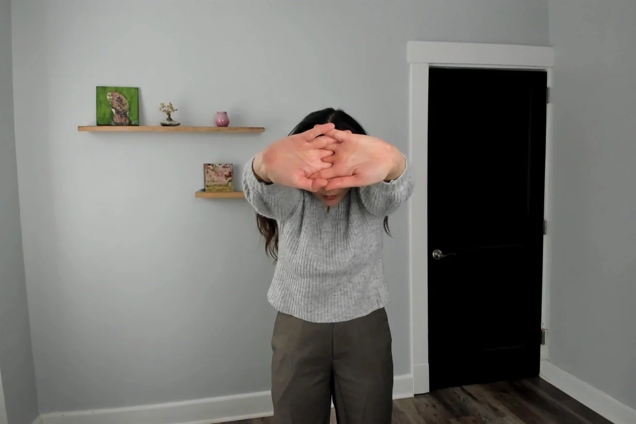 Interlace hands, palms facing down